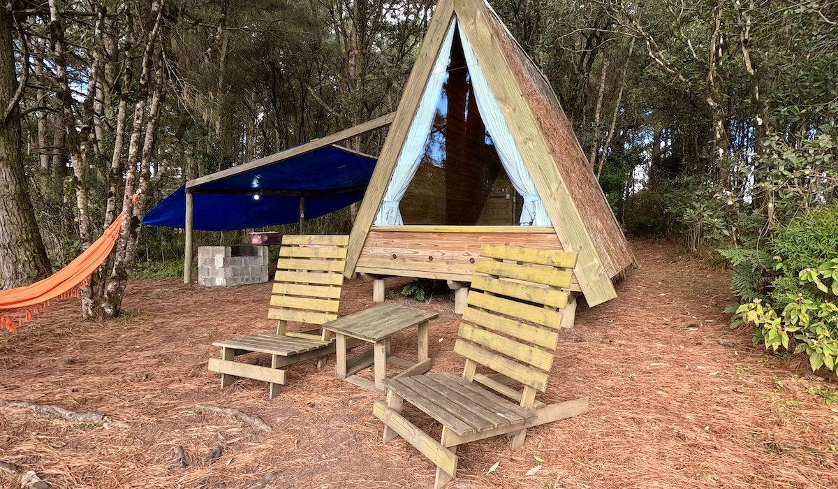 Desacelere e se reconecte com o essencial em uma pequena cabana em estilo A-frame, perfeita para quem busca paz, aconchego e momentos únicos ao ar livre.